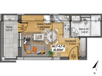 43 кв.м, Партер от 5, Ще бъде въведен в експлоатация 2026 г., Holding Group Real Estate предлага на Вашето внимание: Едностаен апартамент с дворна тераса в жилищ ..., тел.: 0879494333